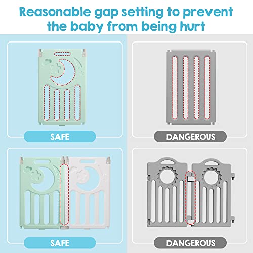 Child Playpen, Dripex Improve Foldable Children Exercise Centre Security Play Yard House Indoor Out of doors Child Fence Play Pen NO Gaps with Gate for Child Boys Ladies Toddlers (Mild Inexperienced + White)