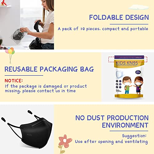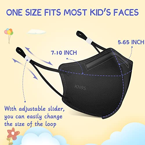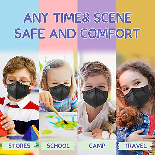 Children KN95 Face Masks 50 PCS, 5-Ply Children Masks Disposable Breathable Security with Adjustable Ear Loops Safety for Kids, Black