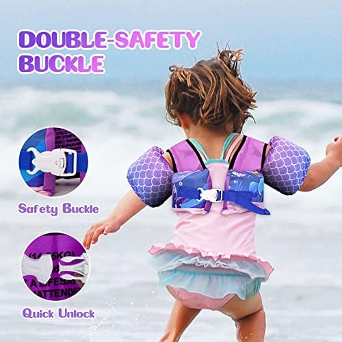 【Security and Design】Adjustable chest strap and double-security buckle, hold the vest from sliding off throughout use, prevents kids from eradicating the vest with out parental assist. Modify the fitting measurement in your child to make studying to swim safer and extra enjoyable in your baby.