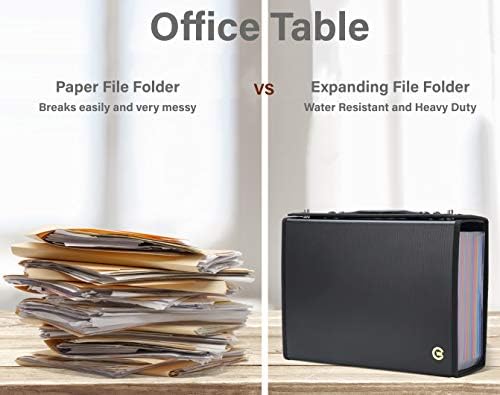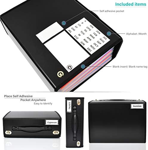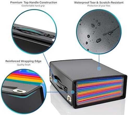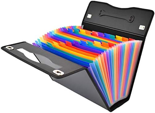 CNK Accordian File Organizer 24 Pockets Increasing File Folder for Letter, A4 File Field Sturdy Deal with for Enterprise, Workplace, Faculty House- Black with Shade Pockets