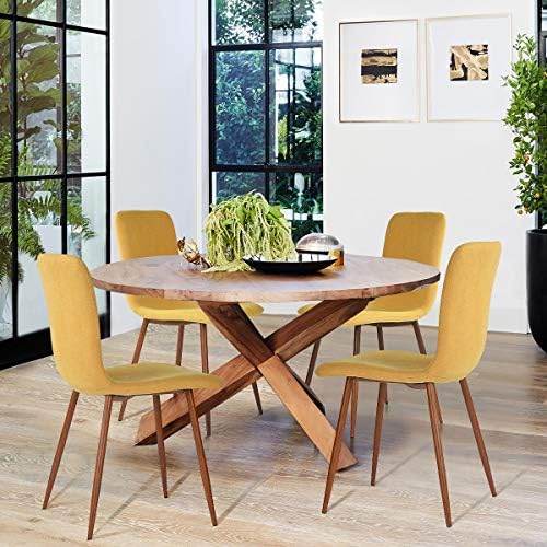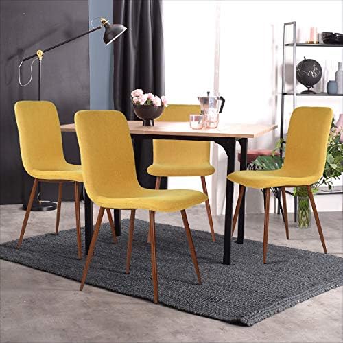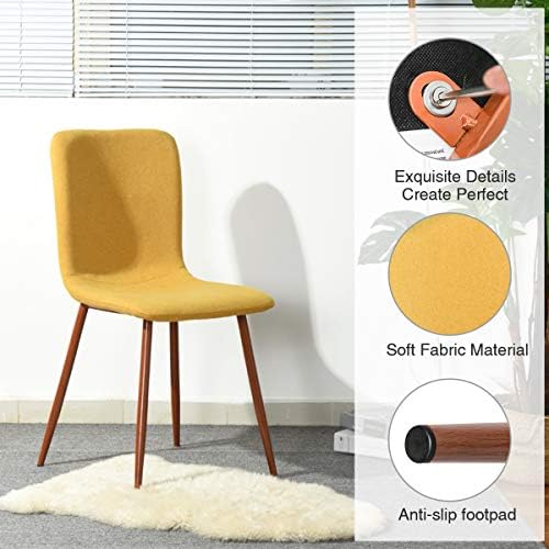 Coavas Eating Chairs Set of 4, Kitchen Chairs with Cloth Cushion Seat Again, Trendy Mid Century Dwelling Room Facet Chairs with Sturdy Metallic Legs for Kitchen Eating Room,Yellow