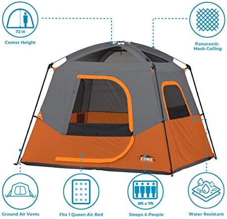 SPACIOUS CABIN: Most campers will have the ability to stand straight up somewhat than crawl round. Matches one queen measurement air mattress or two commonplace measurement cots.