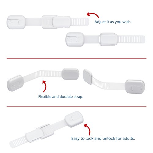 CUTESAFETY Little one Proof Security Locks – Child Proofing Cupboard Lock with 6 Further 3M Adhesives – Adjustable Strap Latches to Cupboards,Drawers,Cabinet,Oven,Fridge,Closet Seat,Door,Window (White, 6)