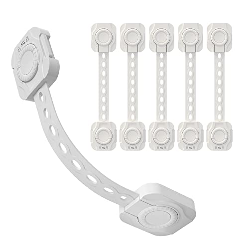 Demecs Little one Security Strap Locks (6 Pack) for fridges, cabinets, Drawers, dishwashers, Bogs, 3M Adhesive Tape,No Drilling Required, Double Lock Safety (Pure White)