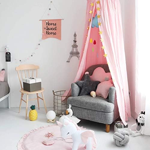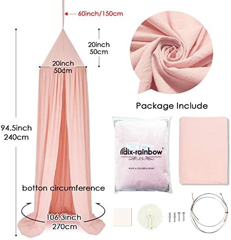 Dix-Rainbow Princess Mattress Cover for Youngsters Child Mattress, Spherical Dome Youngsters Indoor Out of doors Fort Play Tent Hanging Home Ornament Studying Nook Cotton Canvas Coral Pink