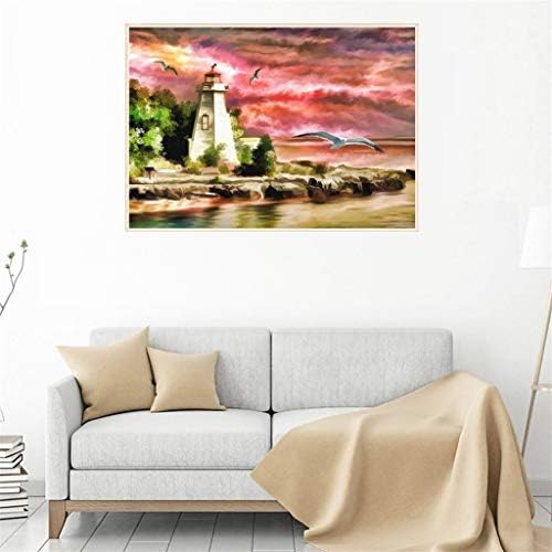DIY 5D Diamond Portray by Quantity Kits, DIY Presents for Adults and Youngsters,Lightouse Ocean Cross Sew Full Drill Crystal Rhinestone Embroidery Photos Arts Craft for Residence Wall Decor (16x12in)