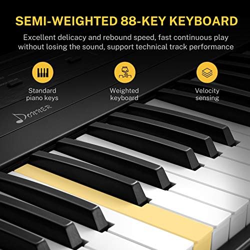 Donner DEP-45 Newbie Digital Piano 88 Key Electrical Keyboard, Full Dimension Semi Weighted Keys, Maintain Pedal, 10 Premium Voices, 20W Inbuilt Audio system, Headphone Output, Highly effective Academic Options