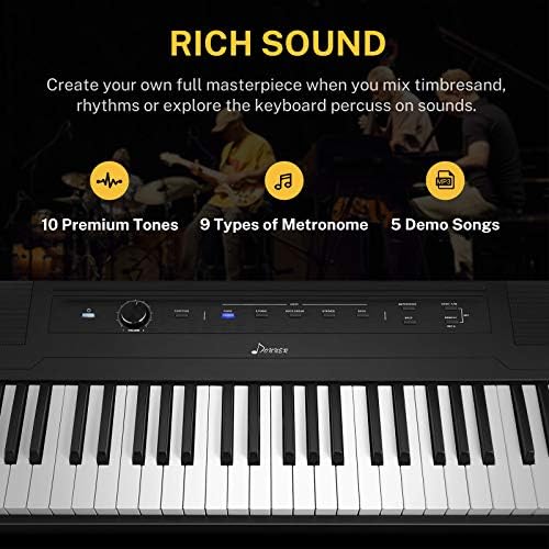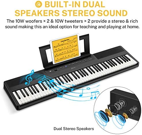 Convincing Sound with Constructed-In Speaker: The electrical keyboard sounds resonate and decay naturally. The 10W woofers × 2 & 10W tweeters × 2 present a stereo & wealthy sound making this a perfect possibility for instructing and enjoying at house. 128 polyphony can keep away from lack of tone and make your efficiency extra fluent and pure. The sounds are merely gorgeous, using the most recent chip which successfully reproduces the sound of an acoustic piano proper all the way down to the precise response and dynamics of your enjoying.