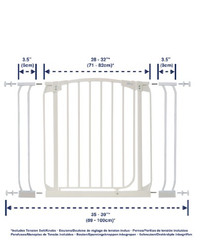 VERSATILE AND DEPENDABLE- The Dreambaby Chelsea gate is loaded with options to assist make your own home a safer place. The gate can accommodate openings of 28-39 inches extensive and is 29.5 inches tall. Utilizing non-compulsory extensions bought individually, the gate might be prolonged as much as 88 inches extensive.