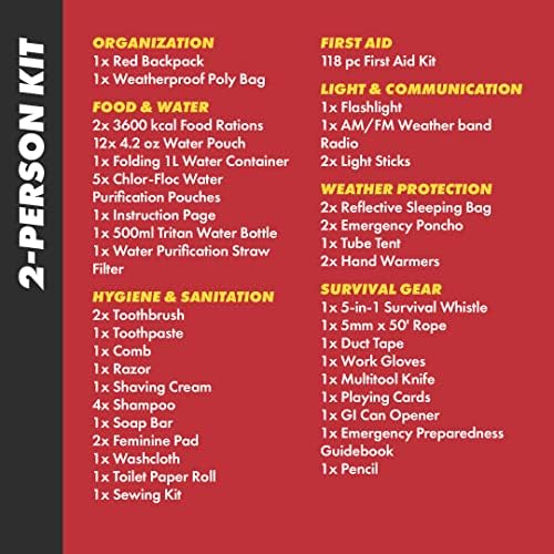 Multi-Goal 72-Hour Package: Prepares you and one other for practically any emergency occasion or catastrophe