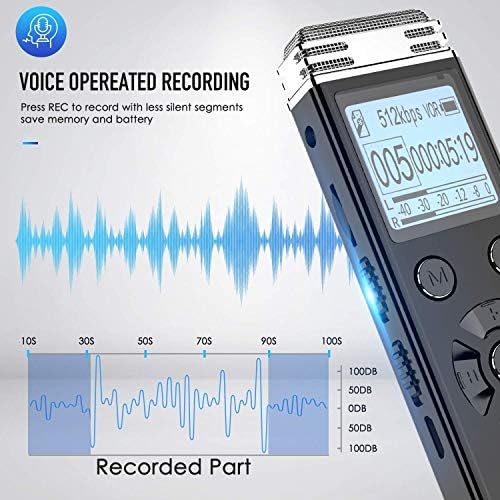 Voice Recorder Stereo & Clear: inbuilt stereo microphone and voice operated recording, double enhanced dynamic noise canceling microphone can seize lossless audio at 1536kpbs, superb digital voice recorder for lectures, conferences, interviews and sophistication