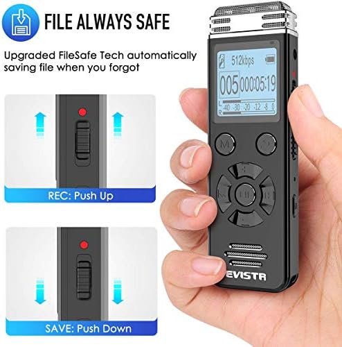 Voice Recorder Simple to Use: Upgraded FileSafe tech, simply merely push the REC button to report, file at all times saved safely even you forgot