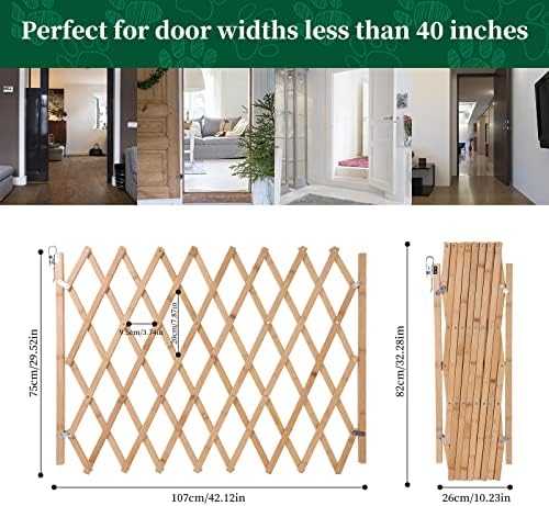 Expandable Accordion Canine Gate, Wood Accordian Growth Canine Gate for Doorway Stairs, Retractable Gate Security Safety for Small Medium Pet Canine, 8″ to 42″ W, 28.7″ H (Upgraded Accordion Canine Gate)