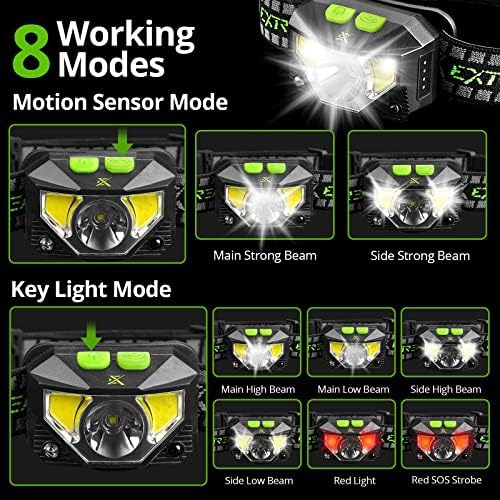 Extremus Midnight Torch Headlamp,8 Gentle Modes Head Gentle,Movement Activated Head Flashlight,IPX4 Waterproof,Rechargeable Lithium-Ion Battery,Supreme for Tenting,Climbing,Biking, Searching,Fishing