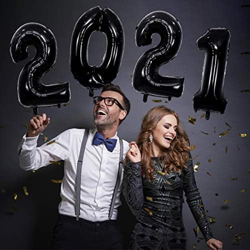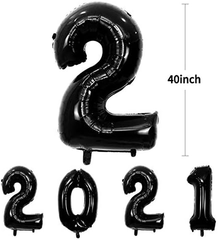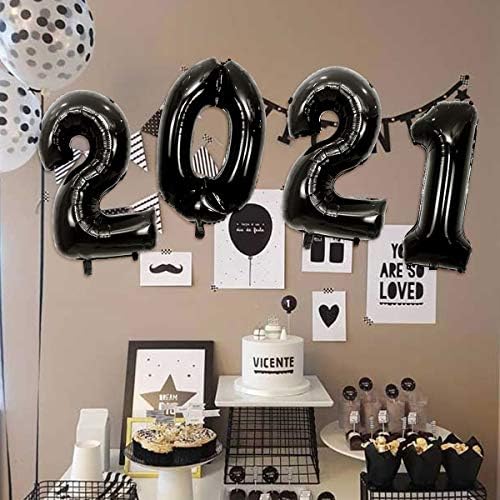 EXV Quantity 2021 Balloons Set Aluminum Foil Quantity Balloons 40 Inch Giant 2021 Commencement Balloon 2021 New 12 months Eve Balloon Ornament for Social gathering Provide (Black)