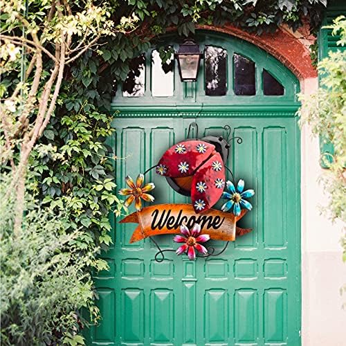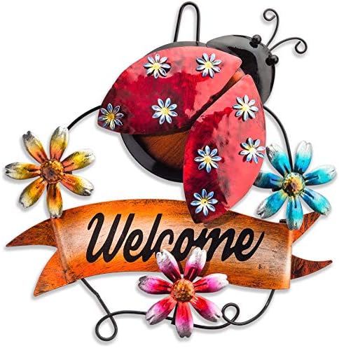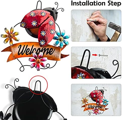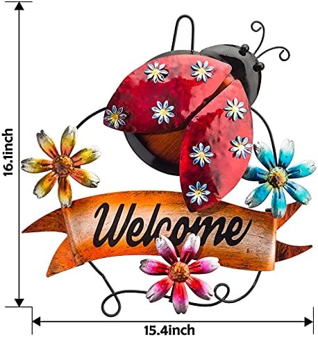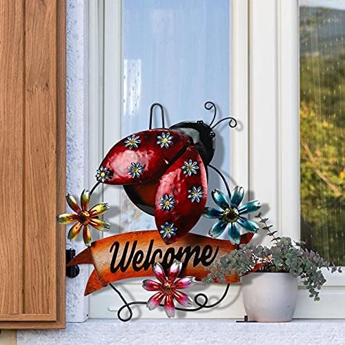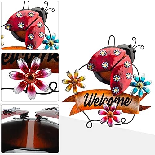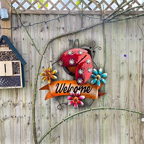 Fawgold Steel Ladybug Wall Decor Artwork Sculpture Outside Welcome Ornament Plaque for Hanging Residence Backyard Yard Fence
