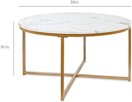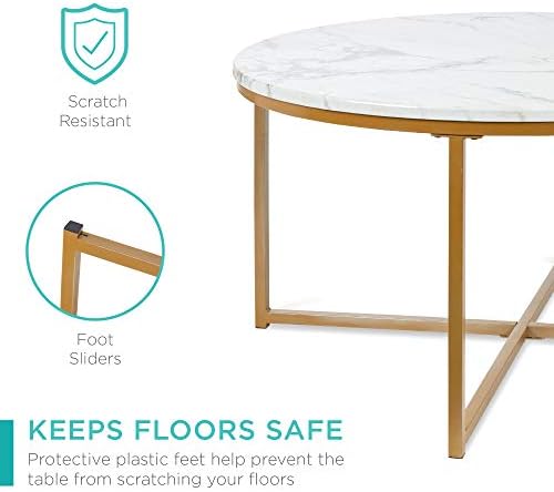 Finest Selection Merchandise 36in Fake Marble Fashionable Spherical Accent Aspect Espresso Desk for Residing Room, Eating Room, Tea, Dwelling Décor w/Steel Body, Non-Marring Foot Caps – White/Bronze Gold