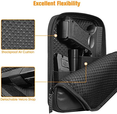 【COMPATIBILITY】Gun pouch dimension: 9.4″×7″×1.3″; Sensible dimension suits most kinds of handguns with a max total size of seven inches available in the market