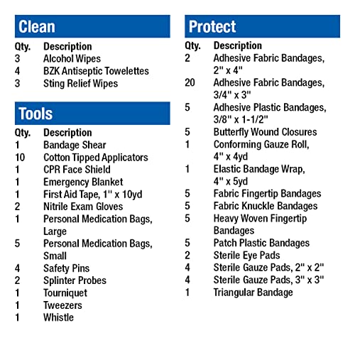 Be ready with the First Assist Solely All-Goal First Assist Package. The package incorporates 106 important first help provides to deal with cuts, scrapes, stings, and sprains that may happen anytime. The labeled internal pockets within the material pouch maintain the primary help provides organized and straightforward to find in an emergency. This compact package suits in a backpack or car and has straps on the again to connect the package to a motorcycle or a belt. The light-weight, transportable package is right for dwelling, mountain climbing, biking, tenting and outside leisure actions.