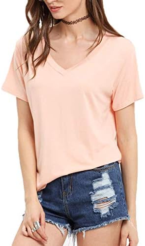 Floerns Ladies’s Stable V Neck Brief Sleeve Informal Tee Shirt Prime