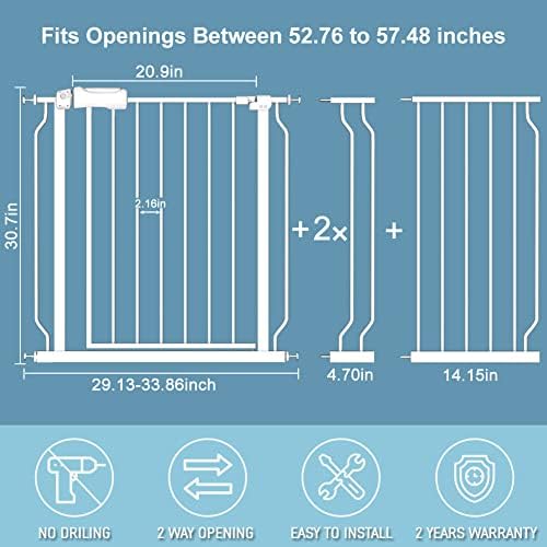 Flower Frail White Further Vast Child Gate 53-57.5 inch for Doorways Strain Mount Child Gate Auto Shut Baby Canine Pet Security Gates with Extensions