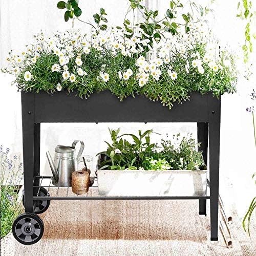 ERGONOMIC: Elevated raised planter field with legs eliminates the necessity to bend over, making gardening handy. Raised backyard mattress on wheels, transfer to wherever you need, with helpful shelf holds equipment or instruments
