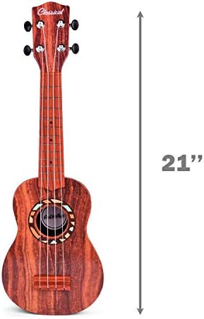 FUN LITTLE TOYS 21 Inch Ukulele for Children, Musical Devices for Children with Strap, Picks and Tutorial, Studying Instructional Toys Items for Boys & Women (Darkish Brown)