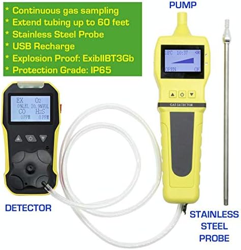 ⚛️ POINT SAMPLING: Excellent for level probe sampling or steady sampling in confined or poisonous areas. DC Pump move fee 0.5LPM with USB recharge. Comes FACTORY CALIBRATED. Flip ON and GO.