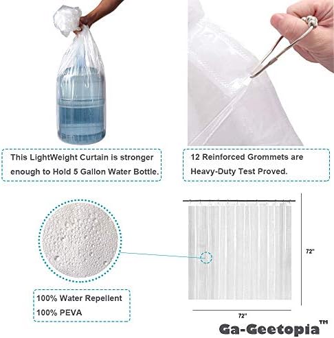 [Good Quality] – Made From 3 Gauge Hight High quality PEVA Materials. This Bathe Curtain Liner is Skinny(Mild Weight) however Sturdy with no plastic smells. Every Curtain Has handed our Weight Take a look at in Ga-Geetopia Lab, which might maintain up no less than 5 Gallon watter Bottle. This Premium Mild-Weight bathe curtain liner will create a greater Toilet for you and your loved ones. Get A Pair of Our Ga-Geetopia Bathe Curtain Liner to search out out!