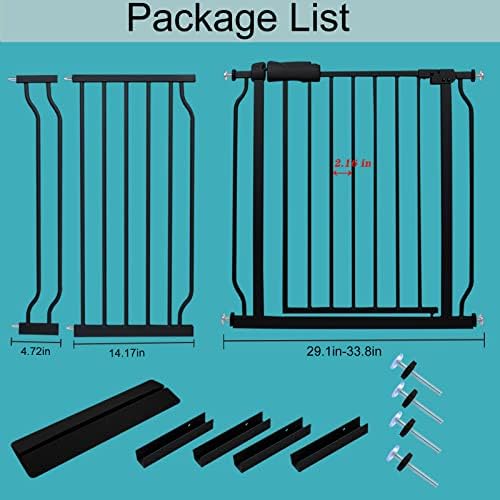 【DURABLE & STURDY Design】Straightforward stroll through additional vast child gates for doorways or stairs manufactured from sturdy and heavy-duty steel building which might defend as much as 100 kilos impacts. The right 2 inches distance between vertical bars can stop your infants and pets squeezing out or getting their heads caught in.