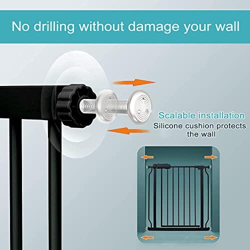 Galle Bear Additional Vast Child Gate Stress Mount Additional Vast Canine Gate Pressure Indoor Security Canine Gates Black Steel Massive Pet Gate for Stairs(71.6″–76.4″/182cm/194cm)