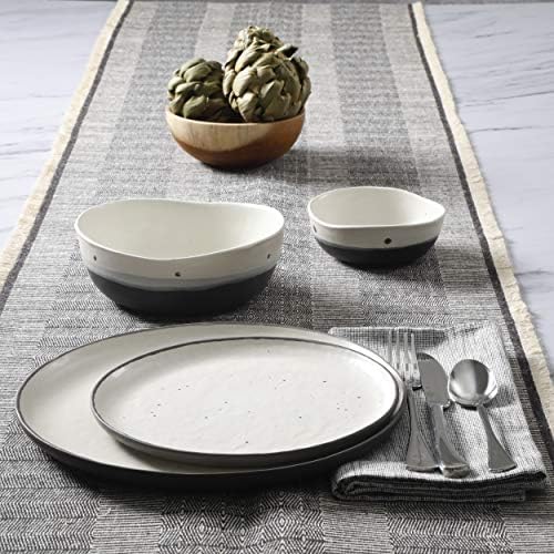 Gibson Elite Rhinebeck 16 Piece Double Bowl Dinnerware Set, White/Black