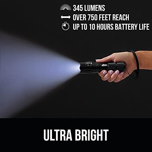 Examined for Highly effective Brightness: that includes extra lumens, this LED flashlight will shock you; compact and light-weight, however extremely shiny, it options 345 lumens that attain over 750 ft to shine shiny and shed extra mild; others might declare to have excessive lumens, however our numbers have been uniquely engineered, examined and confirmed; powered by (3) AAA batteries; batteries not included
