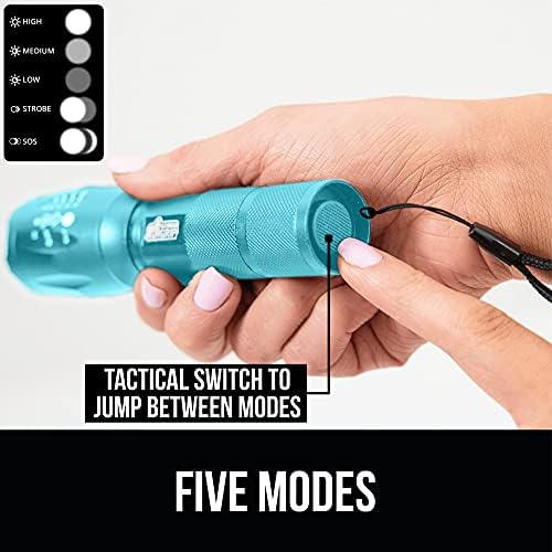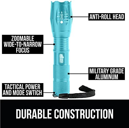 Gorilla Grip LED Tactical Handheld Flashlight, Excessive Lumens, Extremely Vivid 5 Mode, Lengthy Lasting Water Resistant, 750 FT Zoom Flashlights, Tenting Accent, Outside Camp Gear Emergency Outages Turquoise