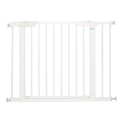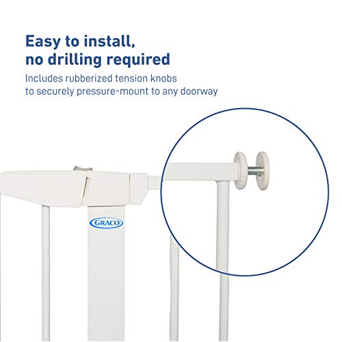 PRESSURE-MOUNTED BABY GATE: Straightforward to put in with no drilling required, this pressure-mounted walk-thru child gate consists of rubberized stress knobs to securely pressure-mount to any door body