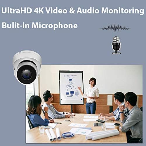 Extremely Excessive Definition 4K (3840×2160)FOUR TIMES the decision of 1080P! 8 Channel H.265 4K NVR with (8) H.265 4K (8MP) @15FPS Weatherproof 3.6mm Large Angle Microphone Audio & Video PoE IP Dome Cameras
