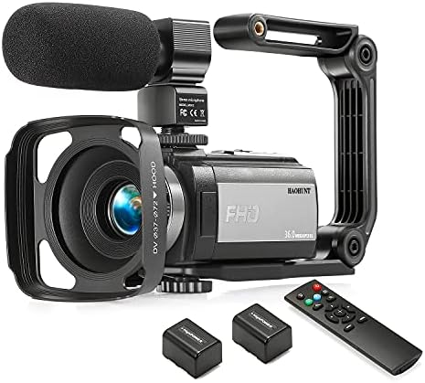 HAOHUNT Camcorder Video Vlogging HD Digital camera 36MP 1080P Digital Recorder, 3 Inch Contact Display screen Camcorder with Rechargeable Exterior Microphone, Distant Management, Stabilizer, 2 Batteries