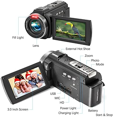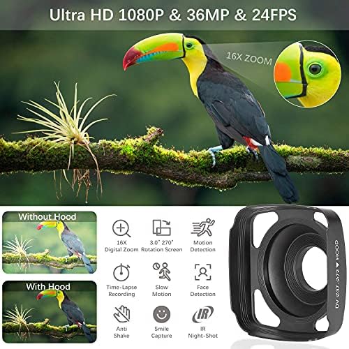 [ Ultra HD Video Camera ] : This camcorder can assist 1080P Decision AVI format Video and 36M(7936×4480) Decision JPG format Picture. It additionally helps 16X digital zoom, IR Night time Imaginative and prescient, 3.0 inch IPS LCD contact display screen, Time-Lapse Recording/Photograph, Sluggish movement, Movement detection, Distant management, USB 2.0, HDMI TV Output, and so on.