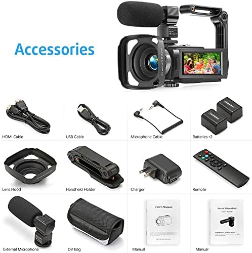 [ External Microphone & Lens Hood ] :This cam recorder comes with an Exterior Microphone that adopts X-Y stereo pickup expertise, clear and secure sound picture localization. Constructed-in rechargeable battery no want to vary batteries. Outfitted with a lens hood to filter out the surplus stray gentle to keep away from lens flare that can assist you to get a extra high quality picture.