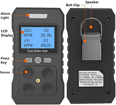 Haokesite 4 Fuel Monitor Rechargeable Moveable Fuel Detector H2S O2 CO and LEL Multi Fuel Monitor Skilled Fuel Sniffer with LCD Show Sound Gentle Vibration Alarm Mode.