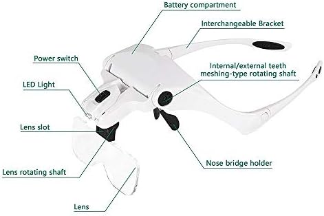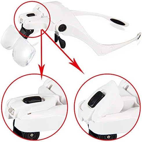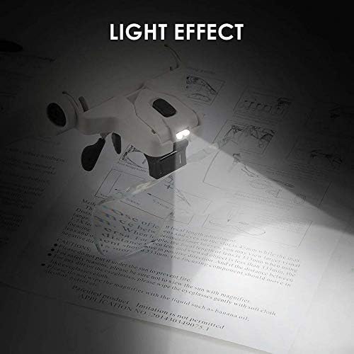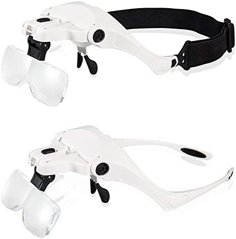 Head Mount Magnifier, Bysameyee Lighted Magnifying Headband Glass Loupe Visor with 2 LED Mild for Shut Work, Jewellery Work, Watch Restore, Arts & Crafts, Studying Help (Magnifying Glasses)