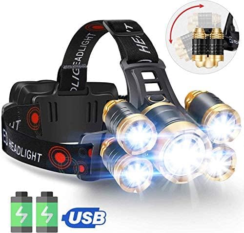 Headlamp Rechargeable Zoom Adjustable Flashlight – Lengthy-Lasting Batteries 1200 LM Tremendous Vivid Waterproof 5 LED Headlamp Tenting Work Lights
