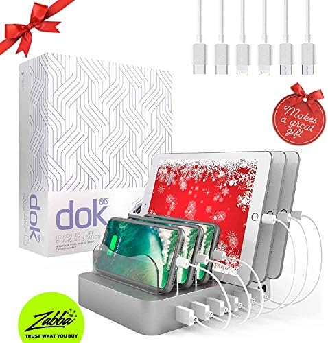 Hercules Tuff Charging Station for A number of Gadgets (Silver) – 6 Quick Combined Cables Included for Cell Telephones, Good Telephones, Tablets, and Different Electronics – Multi Charger Organizer Docking Station