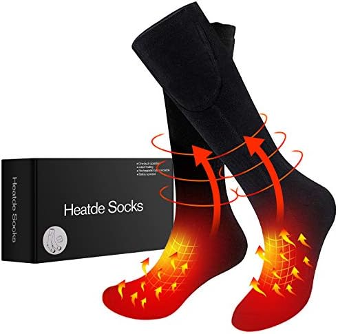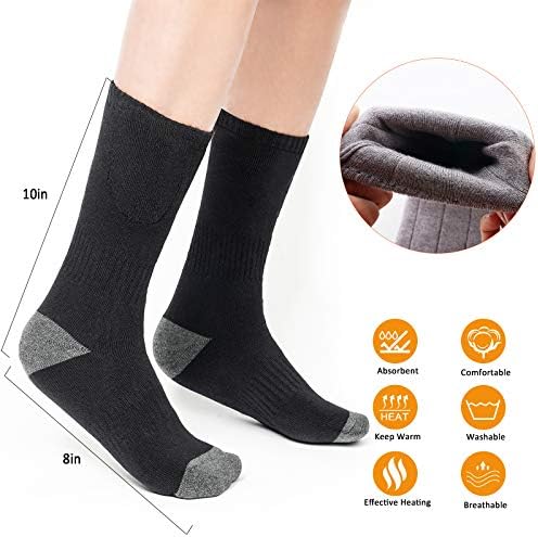 HIGH QUALITY MATERIAL: These heated socks are product of cotton polyester spandex materials, thick, snug and breathable. Tremendous gentle & cozy, padded strengthened heel & toe, and recessed heating. Temperature rise quicker, better heating space entrance instep, maintaining ft heat and toasty in chilly climate, no extra socks!
