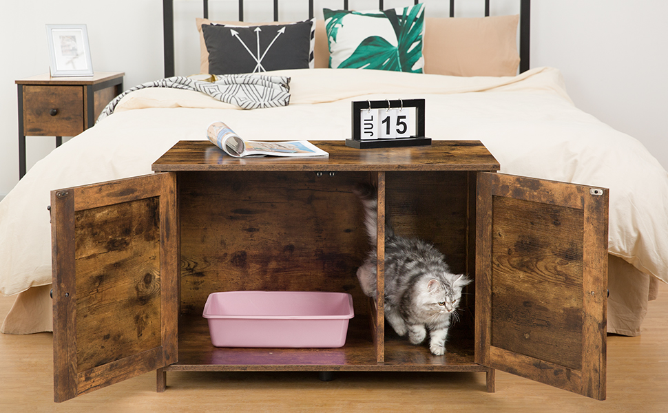 Simpler Cat Care: Double cupboard doorways and lock on the aspect of the pet home not solely lets you scoop the litter day by day and retailer cat meals extra conveniently; it additionally is simpler to get the litter field and mat out