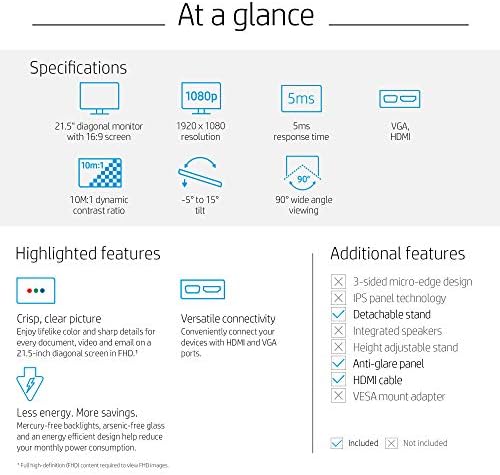 HP 21.5 -inch FHD Monitor with Tilt Adjustment and Anti-glare Panel (22yh, Black)