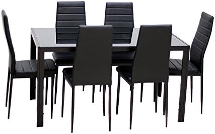 IDS Dwelling 7 Piece Glass Prime Eating Set for six Kitchen Desk and Chairs Set Dwelling Furnishings Dinette Set Rectangular Desk, Black