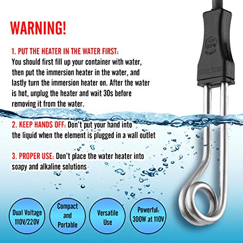 SUPER FAST: With this Water Heater you should have boiling water in minutes. With 300W at 110V, this heating coil won’t hold you ready to have a mug of boiling water. At 220V-240V it turns into extremely highly effective and heats water tremendous quick, so hold watching. 8.KEEP HANDS OFF. Don’t put your hand into the liquid when the component is plugged in a wall outlet