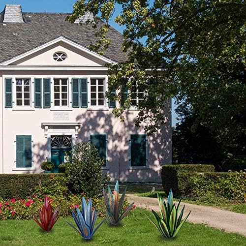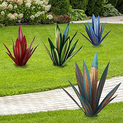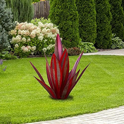 InfantLY Vivid Tequila Rustic Sculpture DIY Metallic Agave Plant Hand Painted Metallic Agave Backyard Yard Artwork Backyard Ornaments Outside Decor (10.6, Crimson)