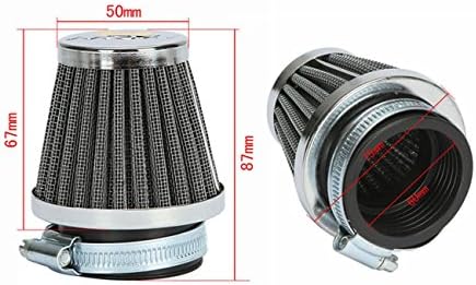 Specification:Materials: metallic with rubber connectorInner diameter of connector: 35mm, 39mm, 48mm, 50mm, 52mm, 54mm, 60mmCome with adjustable clampFitment:Common suits for many 39mm motorcyclesFollowing bike fashions are for reference solely, please measure your carburetor’s mouth outer diameter earlier than you buyHondaHonda CB750 750 1969-1974 (not match CB750 1978)Honda CB750F supersport 750 1976-1978Honda CB750A Hondamatic 750 1977-1978KawasakiKawasaki KZ550A 550 1980-1981Kawasaki KZ550C LTD 550 1982-1983Kawasaki KZ55D GP 550 1981Kawasaki KZ650B 650 1977-1979Kawasaki KZ650C CUSTOM 650 1977-1979Kawasaki KZ650D SR 650 1978-1979Kawasaki KZ650E LTD 650 1980Kawasaki KZ650F 650 1980SuzukiSuzuki GS550 1977-1979Suzuki GS550E 1978-1979Suzuki GS550L 1979Package Included1x Common Motorbike air filter 39mm